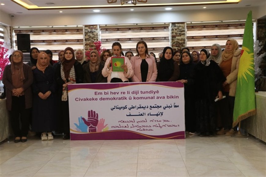 وشدّدت على أن بناء مجتمع ديمقراطي حر لا يمكن أن يتحقق دون تحرير المرأة من القيود المفروضة عليها، داعيةً إلى تعزيز تنظيم النساء لأنفسهن وتسليحهن بالعلم والمعرفة لبناء هوية نسائية حرة ومجتمع خالٍ من العنف.